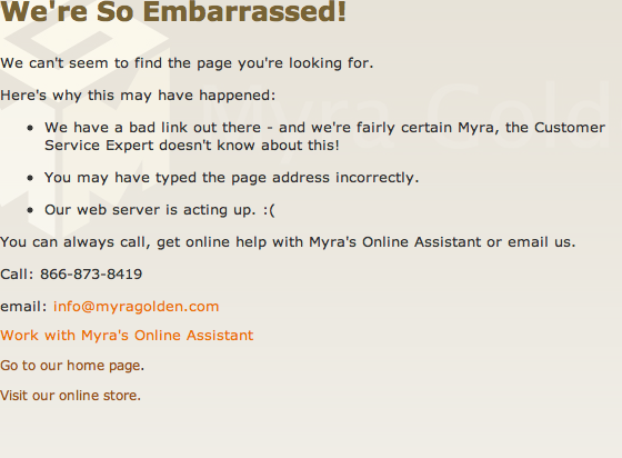 We have a bad link out there – and we’re fairly certain Myra, the Customer Service Expert doesn’t know about this!