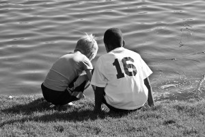 Last Sunday I grabbed my camera and took my son and his friend to the neighborhood lake for a breather from Wii and PlayStation. I let them go barefoot and they ran on at least 100 feet ahead of me. I stayed back to let them do what boys do: explore, play and discover. I watched as they watched the ducks in complete silence and then I smiled when they suddenly got up and began throwing pebbles into the lake, startling the ducks and sending geese inflight. While the boys explored and played, I took shot after shot of them in action. They all but forget I was even there.
