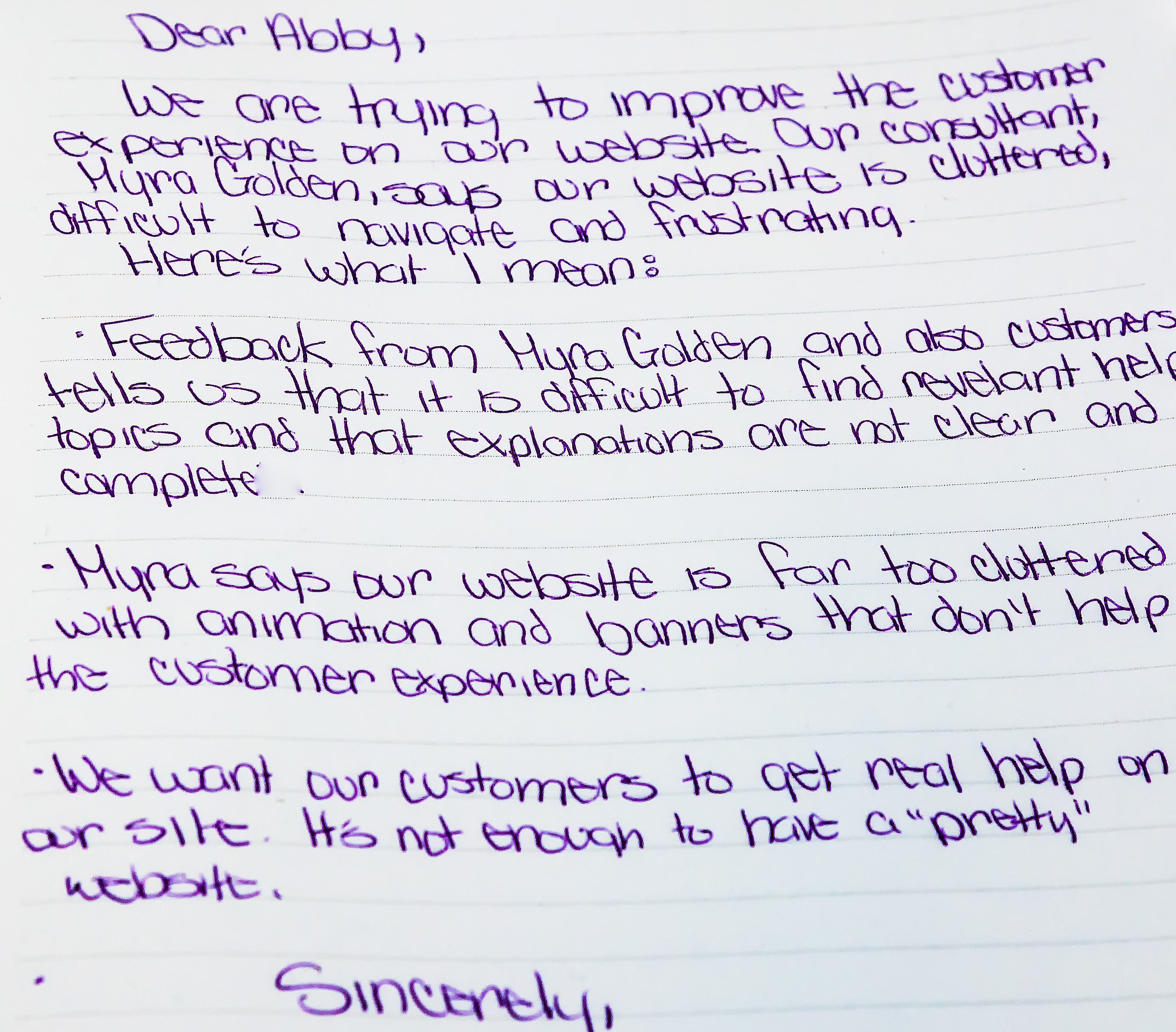 Sounds Interesting, But How Does It Work? When faced with a tough problem (the need to improve a process, speeding up the customer checkout experience, improving the Help section on your website, etc.) you can get everyone impacted by that problem together and announce that they have 15 minutes to write a publishable “Dear Abby” letter. The letters you get back from the group will serve as the first step in defining the exact problem or goal you want to achieve. Often, the answers to the problem are found in the words of the “Dear Abby” letter.