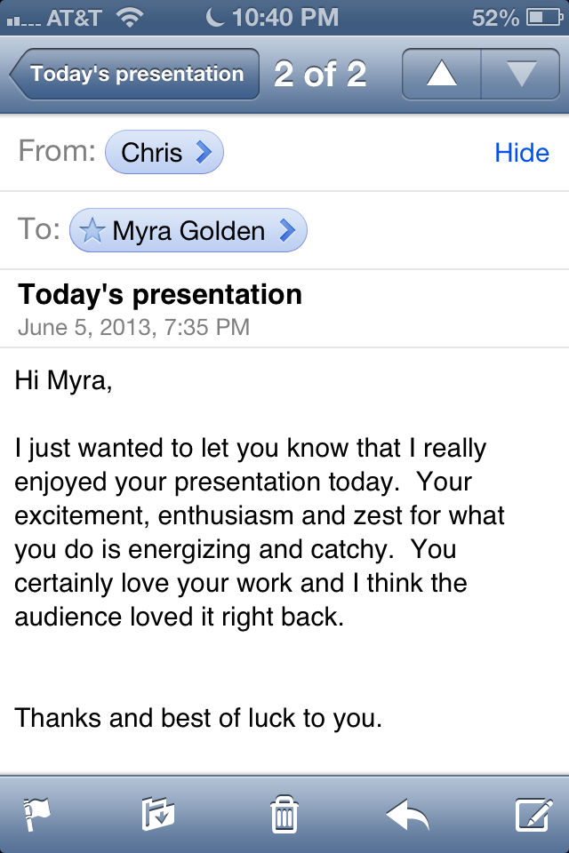 My clients pay me to deliver a message and they expect me to deliver that message in an engaging, energetic and entertaining way. I put a lot of energy into designing and rehearsing my keynotes so that I captivate every member of my audience and exceed my client’s expectations.