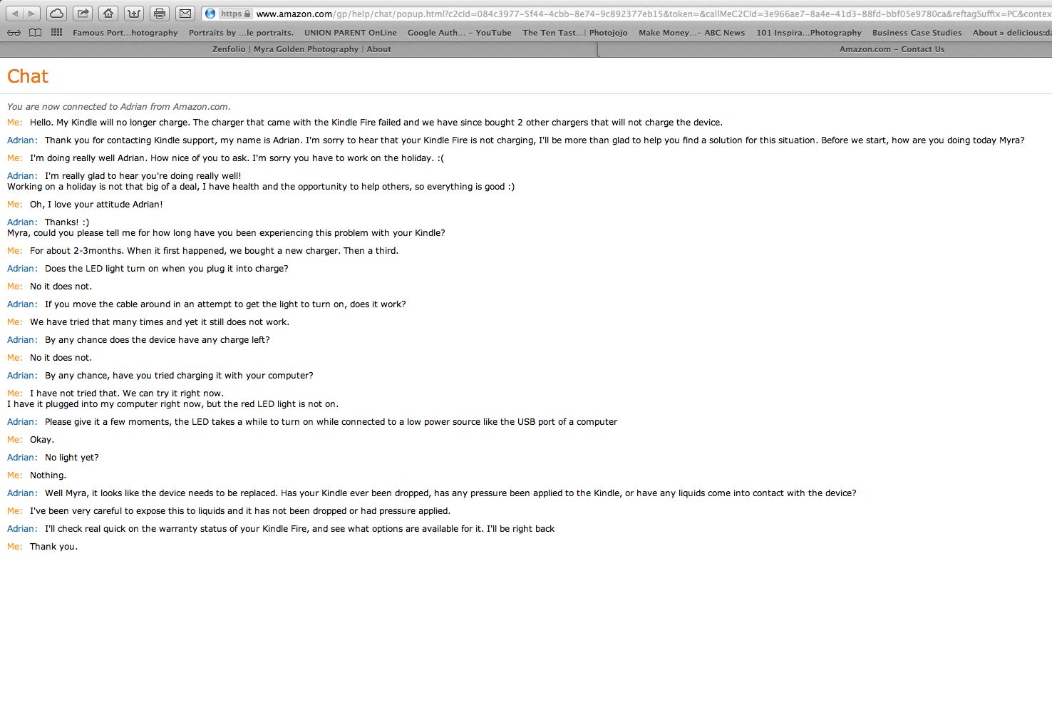 Yesterday I had to reach out to Amazon.com for customer support for my daughter’s Kindle Fire. I chose Chat for my help, and I’m so glad I did because I received refreshingly excellent service that made me say, “Now that’s Beyond WOW!”